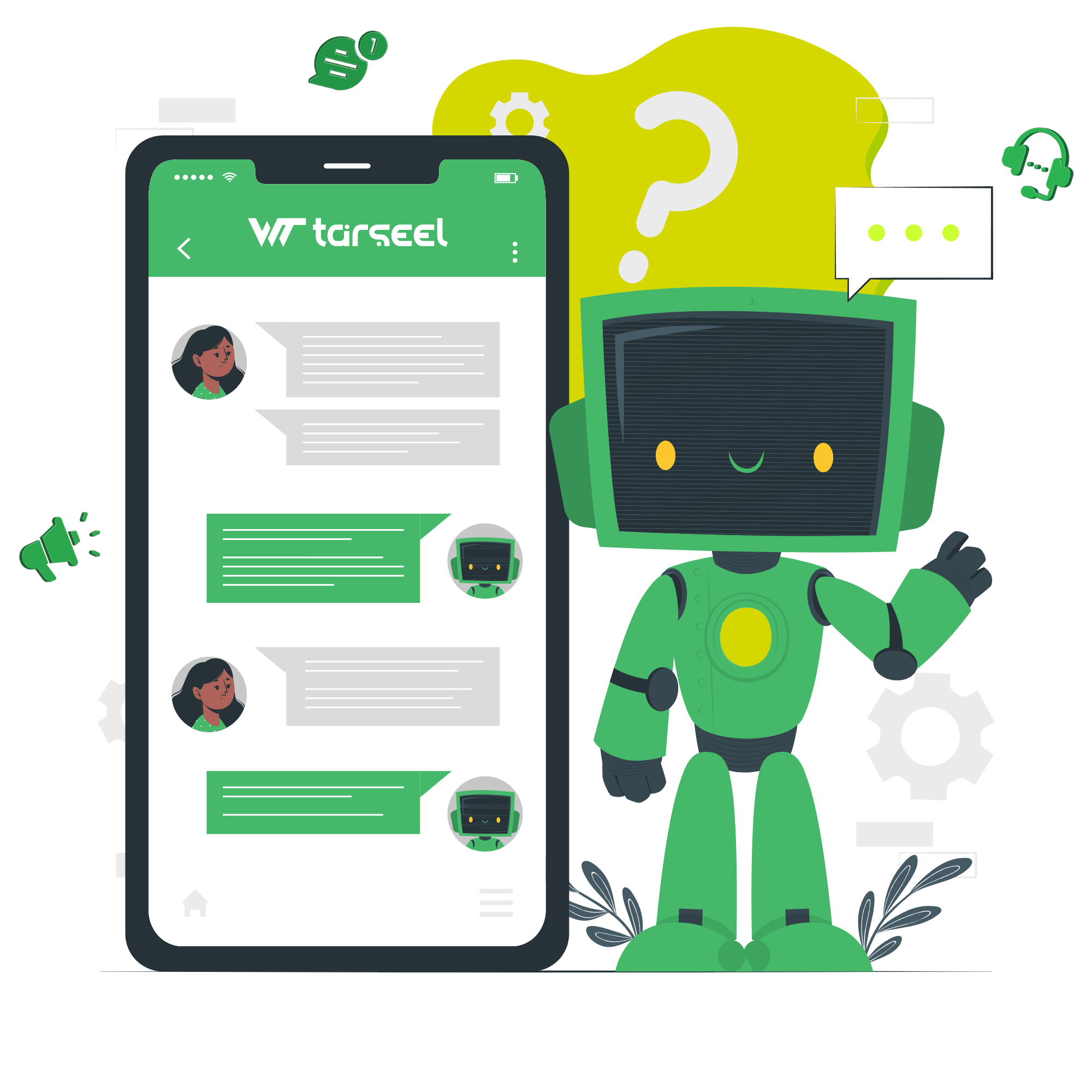 WeTarseel enhances your customer service capabilities by integrating sophisticated automated chatbots with the WhatsApp Business API. Our chatbots provide instant, accurate responses to customer inquiries, ensuring seamless, 24/7 support and engagement.